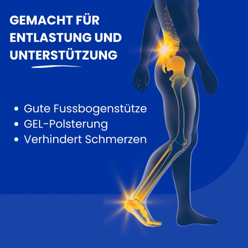The Vivita - Insoles are made of medical silicone which ensures optimal shock absorption. The medical silicone in the heel area and midfoot absorbs the impact and reduces the pressure when you move or stand still. This cushioning can drastically reduce pain in the foot/heel, calves, knees, hip, and lower back.